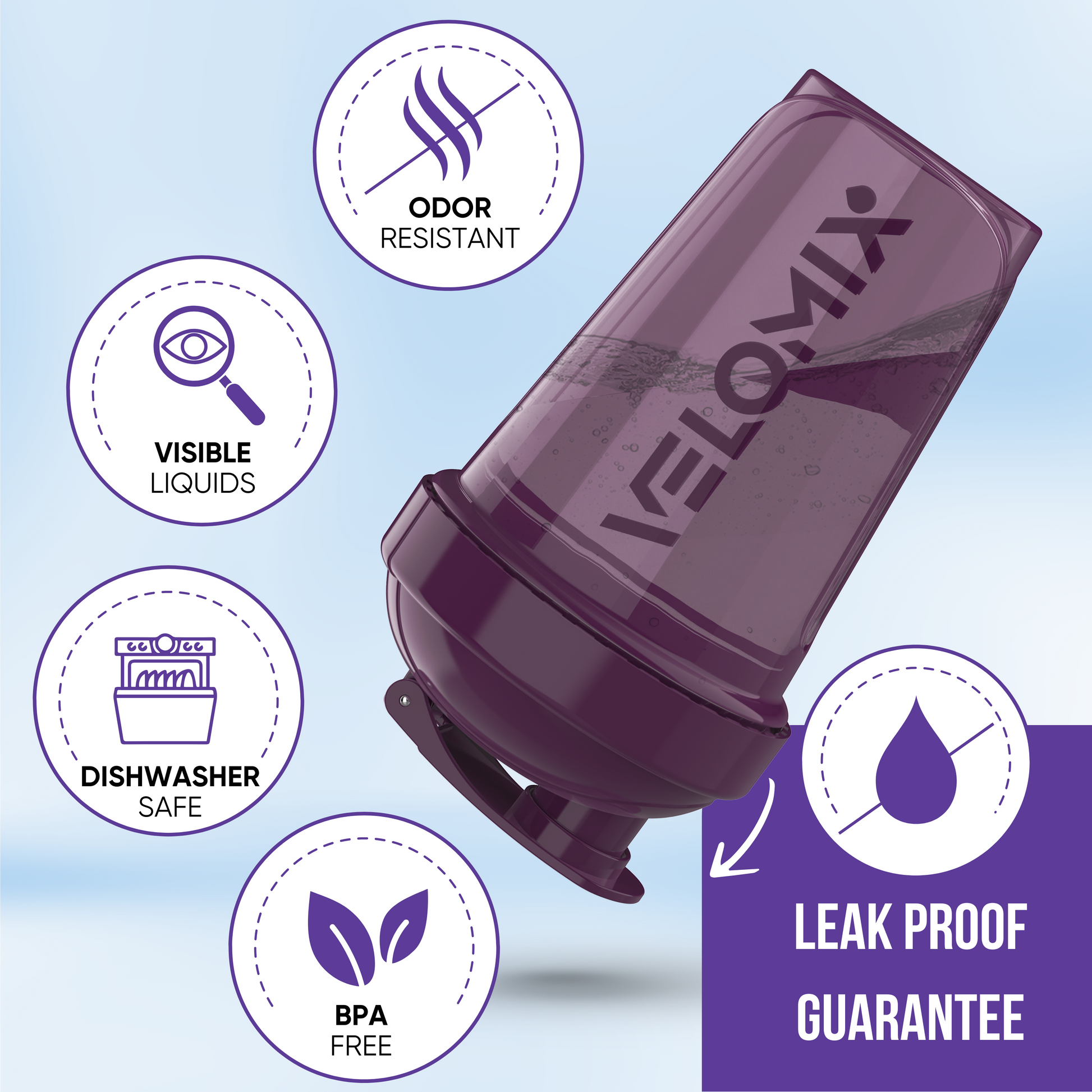 Every Velomix shaker bottle is backed by our Lifetime Leak-Proof Warranty. If your shaker ever leaks or fails during normal use, we’ll replace it.